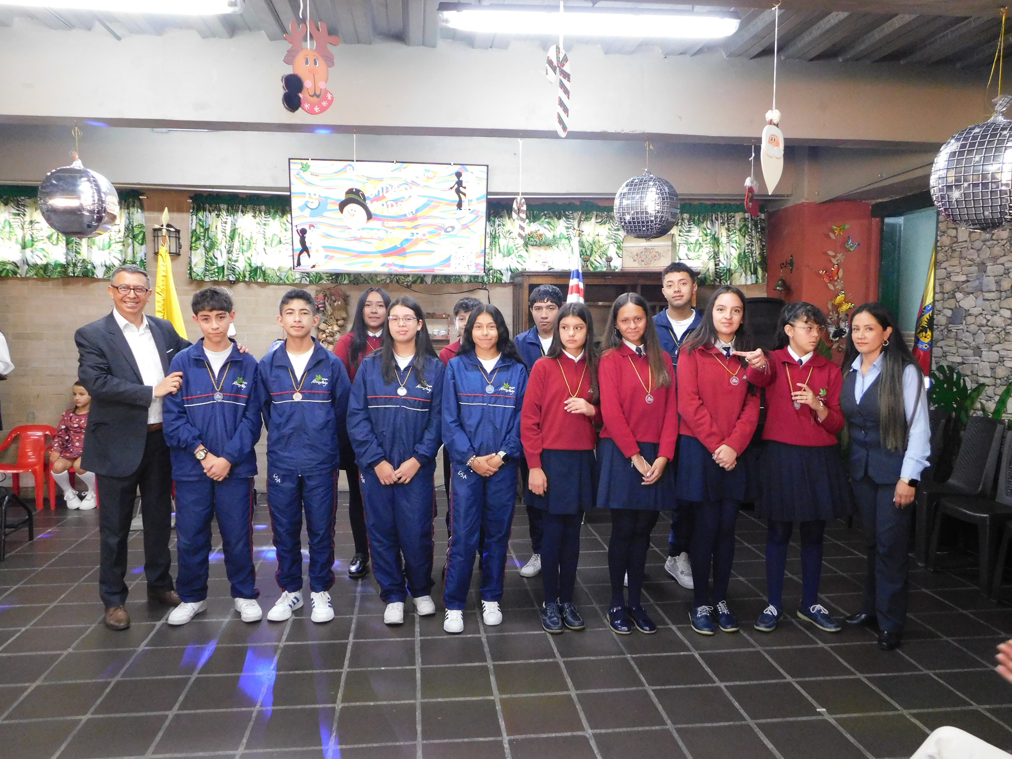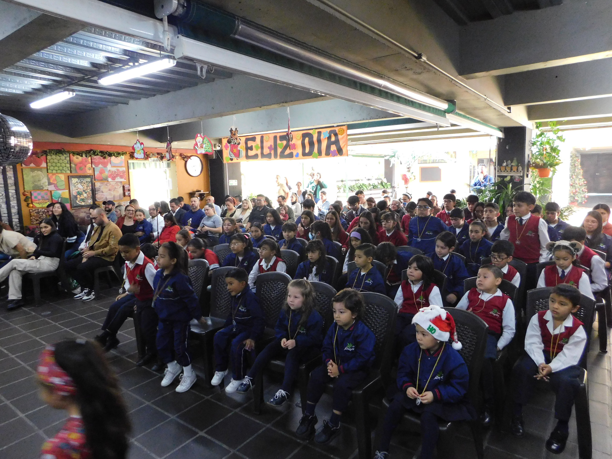 Contamos con la asistencia de directivas, padres de familia, profesoras, estudiantes y demás personal del colegio para presenciar la entrega de menciones honoríficas a los estudiantes de cada curso así como una presentación especial.